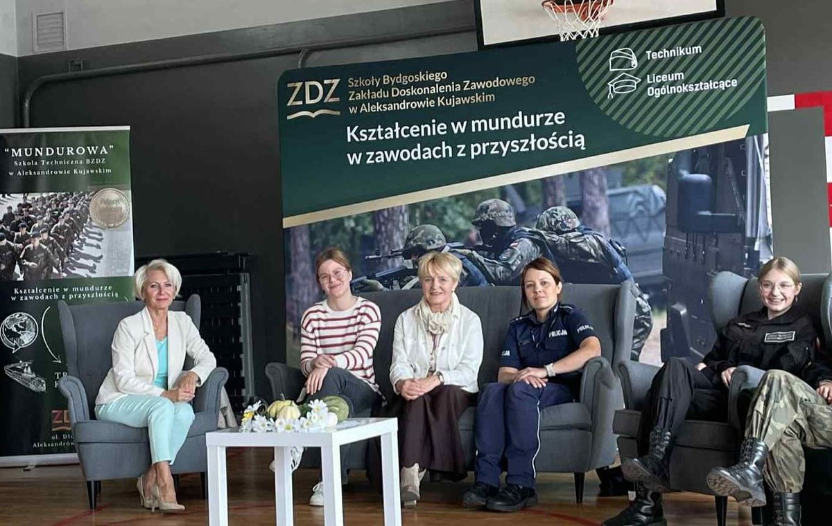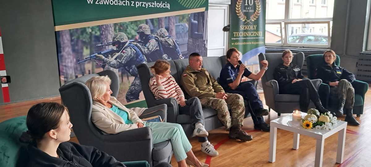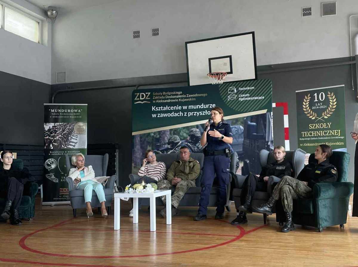 W Technikum Mundurowym w Aleksandrowie odbyło się spotkanie w ramach Tygodnia Przeciwdziałania Przemocy. Policjantka zajmująca się profilaktyką społeczną wspólnie z kuratorem sądowym i psychologiem, zasiadła w loży ekspertów. Odpowiadała na pytania dotyczące przemocy rówieśniczej.