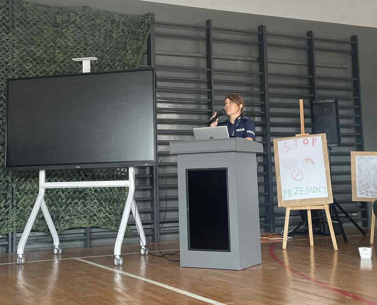 Wczoraj (01.10.2025r.), z uczniami Technikum Mundurowego, spotkała się policyjna profilaktyk by wpływać na podnoszenie świadomości dotyczącej różnych przejawów przemocy – fizycznej, psychicznej czy tej w sieci. Wspólnie z psycholog i kuratorem sądowym opowiadała na pytania młodzieży dotyczące przemocy rówieśniczej.