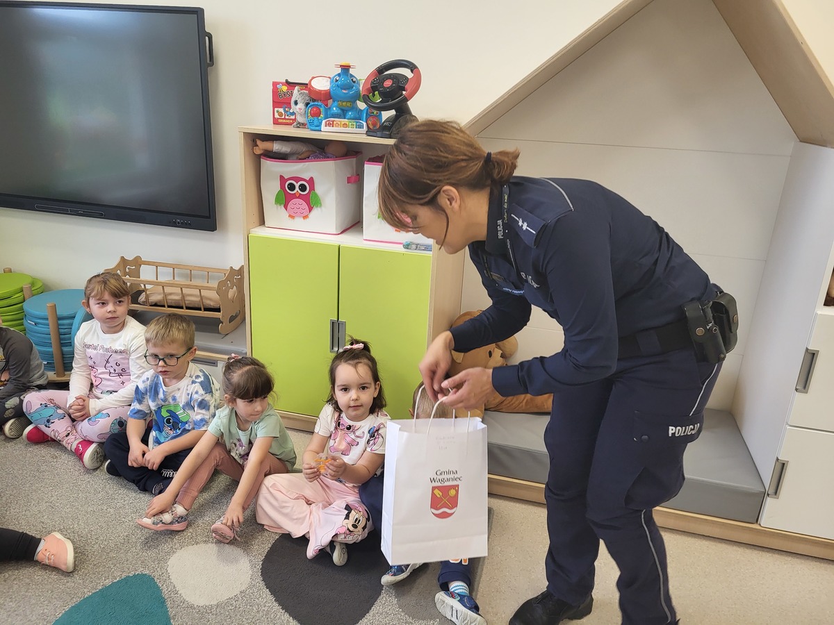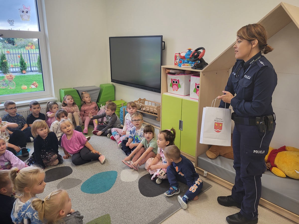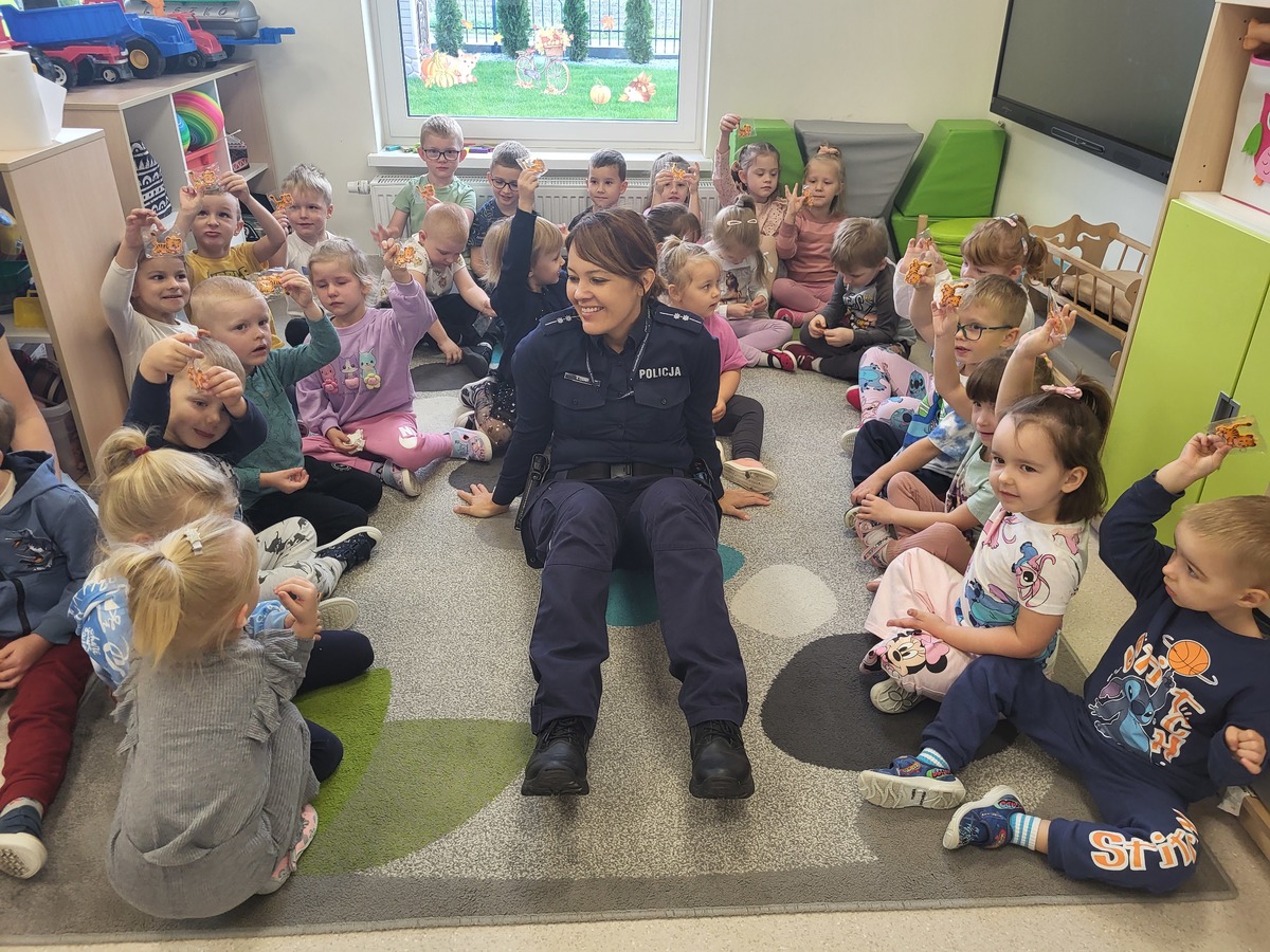 Od 1 października 2025 roku Policja kolejny raz rozpoczęła akcję informacyjno-edukacyjną skierowaną do pieszych pn. „Świeć Przykładem – Noś odblaski”. Dlatego podczas spotkania policjanci kładli szczególny nacisk na korzystanie przez dzieci z elementów odblaskowych. Mówili o tym, aby zawsze nosić je w widocznym miejscu, ponieważ dzięki temu pieszy jest widoczny z dalszej odległości, co daje kierowcy czas na prawidłową reakcję.