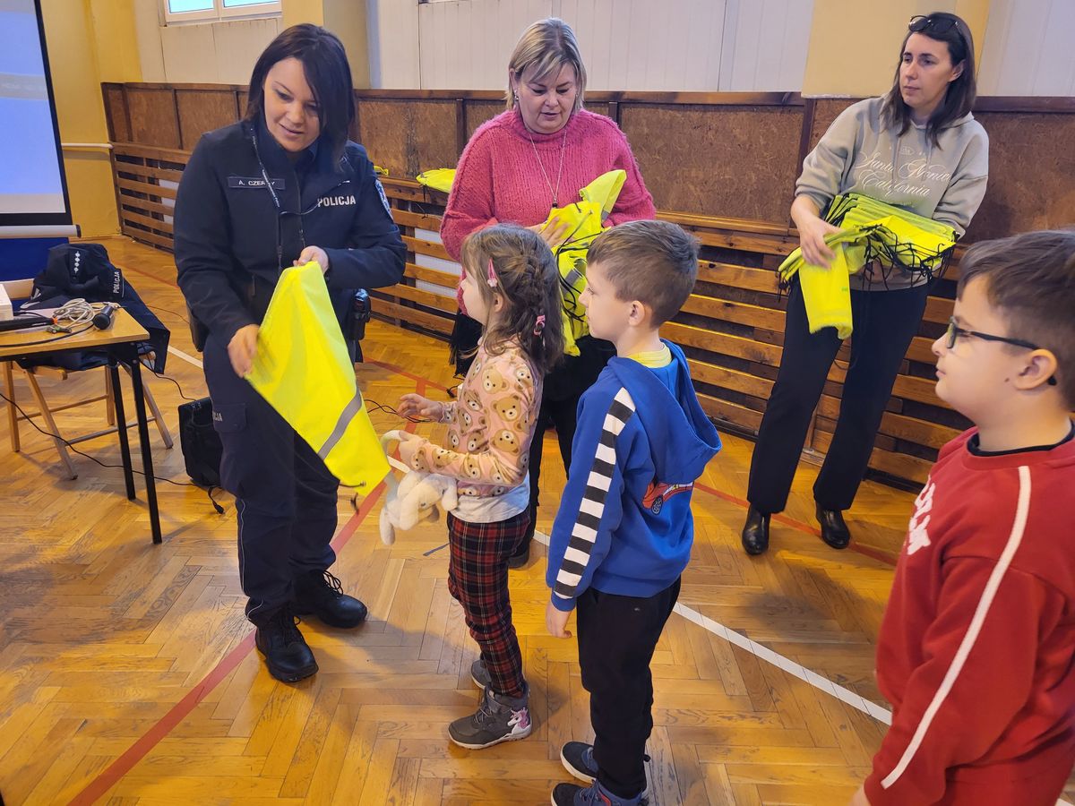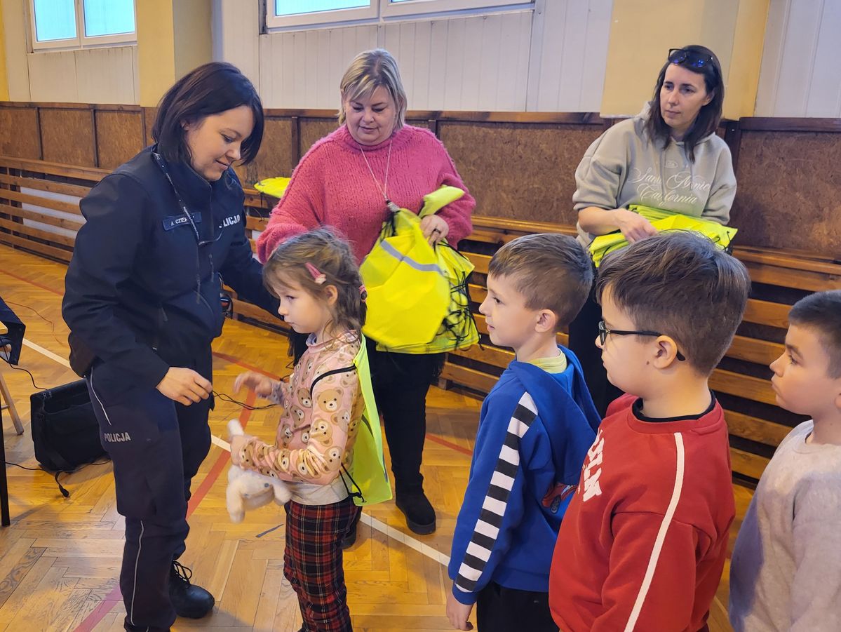 Bezpieczeństwo najmłodszych, to jedno z najważniejszych zadań dla Policji. Różnego rodzaju spotkania i przypominanie o odpowiednim zachowania na drodze, czy w kontaktach z nieznajomymi, to dobry sposób na poprawę bezpieczeństwa najmłodszych. Szczególnie istotne jest przypominanie o obowiązku korzystania z odblasków po zmroku poza terenem zabudowanym. Te kwestie nabierają szczególnego znaczenia z uwagi na zbliżające się ferie. Szybko zapadający zmrok, opady, czy gęsta mgła, to warunki z jakimi trzeba się liczyć na drodze. Dlatego policjanci nie tylko skupiają się na egzekwowaniu przepisów, ale również na promowaniu i przypominaniu o odblaskach. Spotkania z dziećmi, to również okazja do przekazania odblasków, które poprawią bezpieczeństwo najmłodszych.